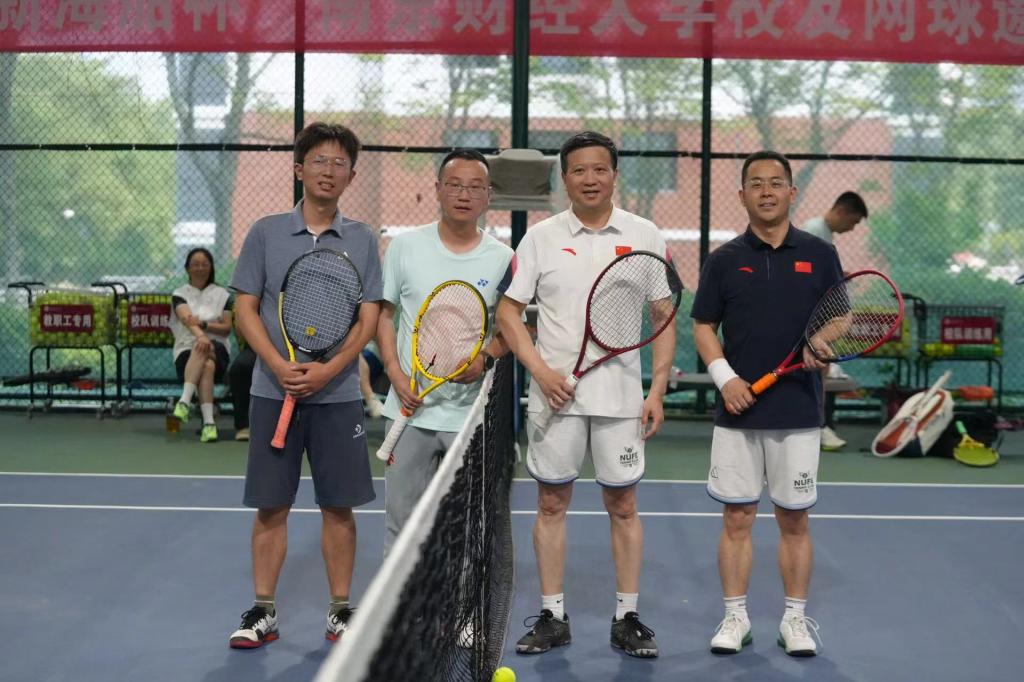 本次网球邀请赛充分发扬敢于拼搏、勇于进取的竞技精神,赛出了水平、赛出了风格、赛出了情谊,更展示了广大南财人的健康体魄和积极向上的精神风貌。比赛过程精彩纷呈,各位选手以球会友、你接我挡、拼尽全力。赛场氛围热烈,处处洋溢着激情、和谐的氛围,无不彰显着体育的魅力与精彩。比赛之余,校友们与母校教师热情交流网球技术,共忆母校时光。经过激烈的小组循环赛、淘汰赛的比拼和对决,最终,施国安、肖迪懿组合获得校友网球邀请赛冠军。黄步龙副校长等为获奖的参赛校友颁发奖杯。