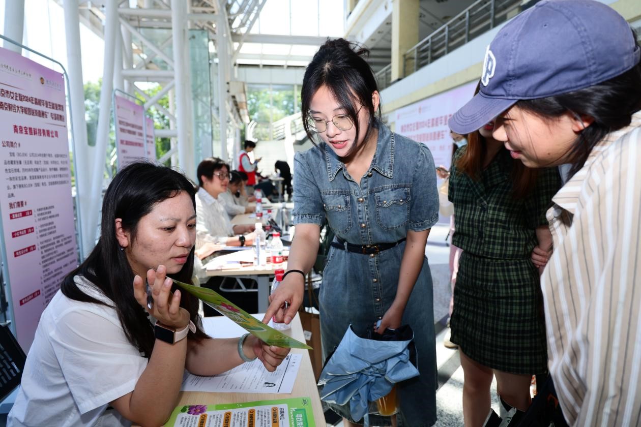 据悉,南京市民营女企业家联合会于2017年12月成立,发展至今已有300余家会员,始终围绕党政工作大局,以学习促引领,搭平台促交流,被全国工商联评为“四好商会(五星级商会)”,是南京市最具活力和影响力的社会组织之一。本次招聘会邀请到南京仁福珠宝首饰设计制作有限公司、A.O.史密斯(中国)水系统有限公司、天笑投资集团有限公司、南京瀚波新能源科技有限公司等20余家南京市女企联会员单位参会,涉及文化、金融、电子、服务业等多个行业领域,为我校毕业生提供多样就业选择。招聘会现场设置了勤学励志就业帮扶、团团微就业等咨询台,为毕业生提供就业政策咨询、生涯规划、简历指导等服务。
