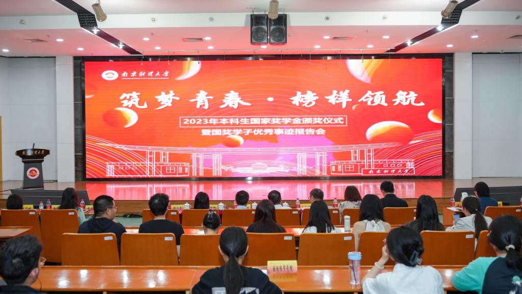 为扬青春风采,展榜样力量,5月23日下午,我校在仙林校区图书馆一楼报告厅举办2023年本科生国家奖学金颁奖仪式暨国奖学子优秀事迹报告会。校党委书记张利民,党委常委、副校长赵国栋出席会议,党政办、党委宣传部、党委学生工作部、教务处、校团委等部门负责人,各学院党委副书记,2023年国家奖学金获得者及各学院师生代表参加会议。报告会由党委学生工作部部长韩力争主持。