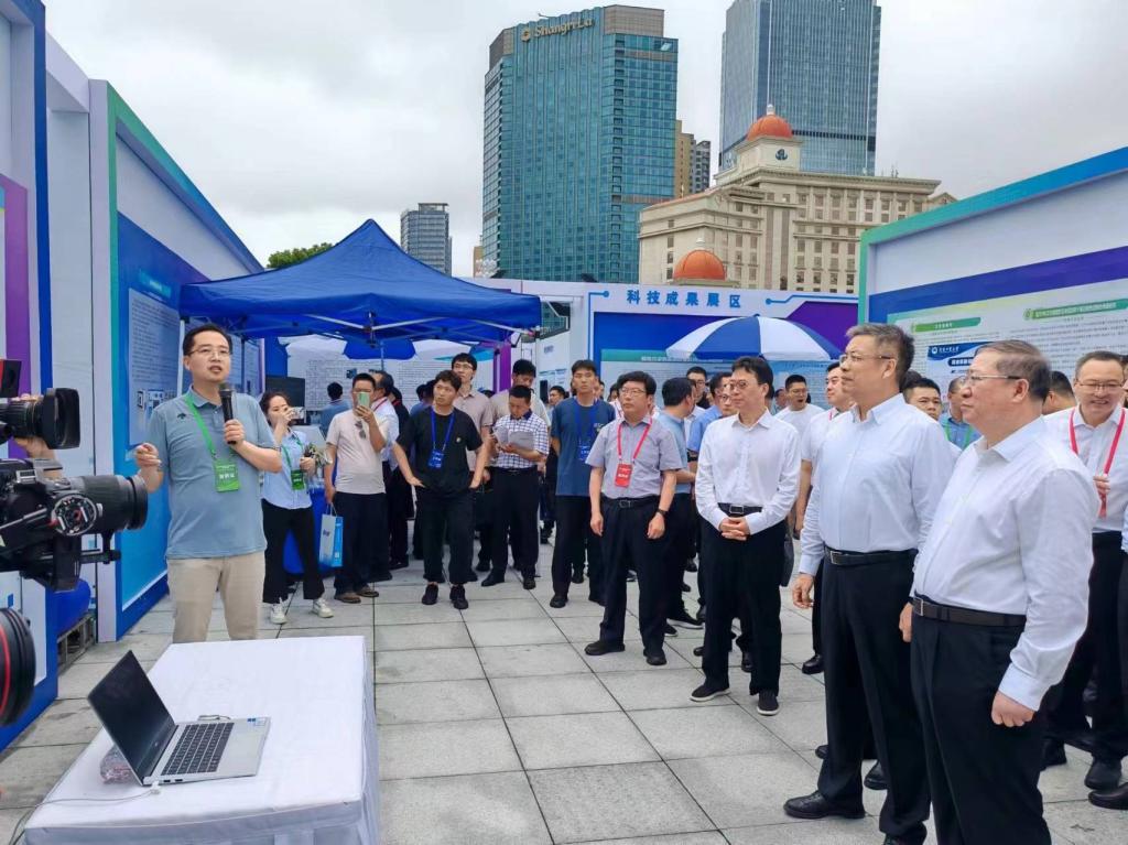 活动现场,刘焕鑫局长、任珠峰常务副省长、江苏省粮食和物资储备局局长肖延川详细了解我校最新科技成果,并与参展老师深入交流。