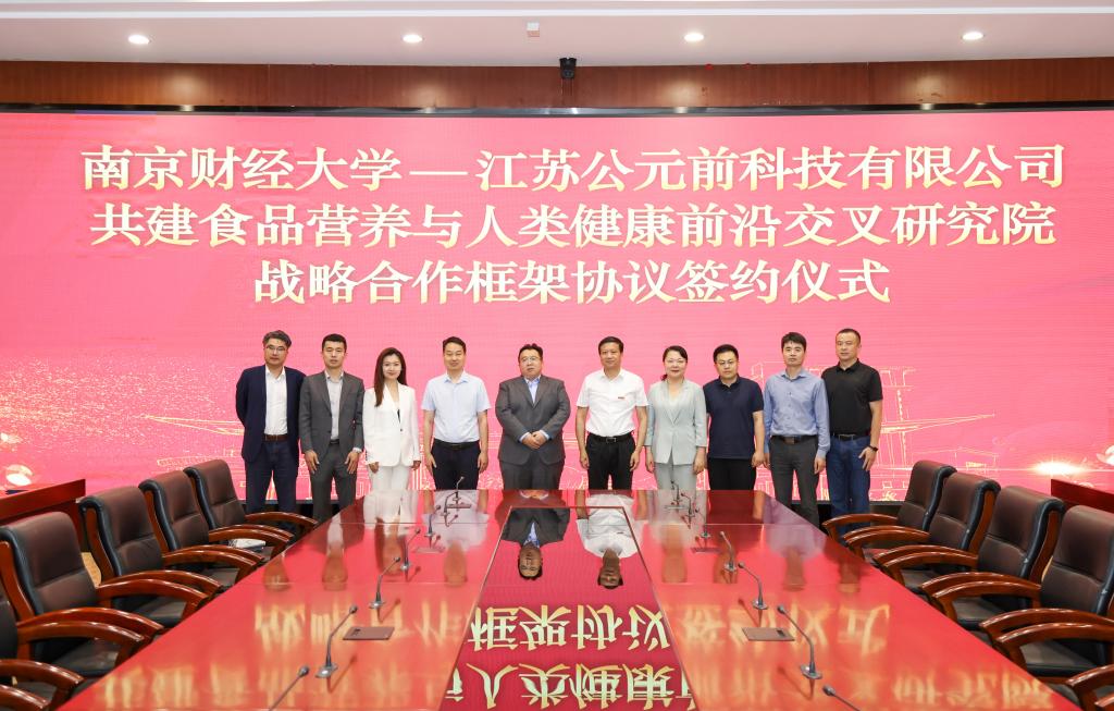 6月5日上午,我校与江苏公元前科技有限公司共建食品营养与人类健康前沿交叉研究院战略合作框架协议签约仪式在仙林校区工科楼二楼会议室举行。校党委常委、副校长李煜,江苏公元前科技有限公司总经理李溪蒙、副总经理孙悦、副总经理李智年出席仪式。校党政办主任党郑锷、科学研究院院长方勇、食品科学与工程学院院长唐培安、人事处副处长李光泗、科学研究院副院长陆颖健和食品科学与工程学院部分师生代表等参加了仪式。仪式由科学研究院院长方勇主持。