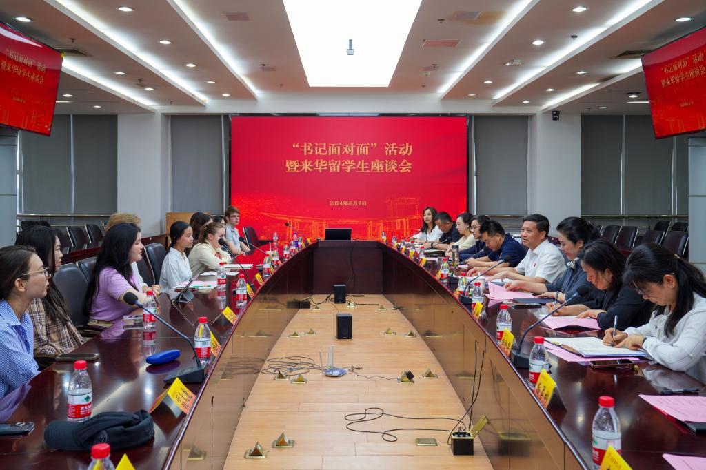 6月7日上午,我校在仙林校区行政楼16楼会议室召开“书记面对面”活动暨来华留学生座谈会。校党委书记张利民主持会议并讲话。党委常委、副校长姚文韵出席会议,党政办、党委宣传部、信访督办室、保卫处、国际合作与交流处、后勤基建处、国际教育学院党工委、国际教育学院等相关部门负责人及留学生代表参加会议。