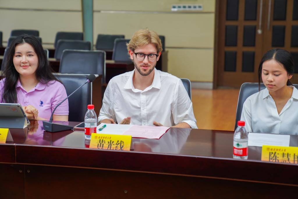 座谈会上,南非籍本科生莫丽佳(Van Der Merwe Liesje Elizabeth)、泰国籍本科生陈慧艳(Akaradejruangsri Miss Vasuwee)、俄罗斯籍本科生黄光线(Kravtsov Grigory)、哈萨克斯坦籍研究生姜美丽(Jaxybekova Mariam)作为留学生代表先后发言,从学习生活、文化交流、学业规划等多角度分享了自己的校园学习与生活感受,并就健全课程设置、丰富文化交流活动等提出建议。相关部门负责人就同学们关心的问题一一进行了认真解答和回应。
