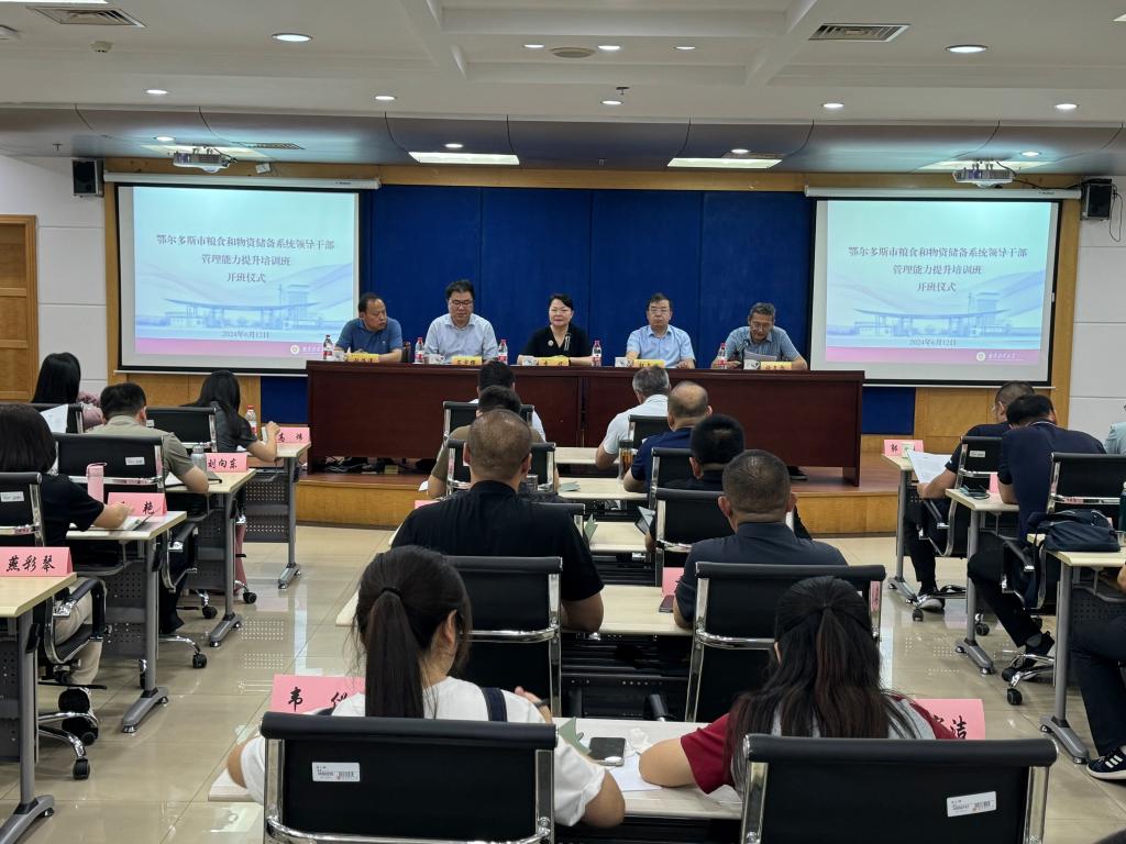 6月12日上午,由我校承办的鄂尔多斯市粮食和物资储备系统领导干部管理能力提升培训班在福建路校区开班。鄂尔多斯市发展和改革委员会党组成员、副主任郭占明,内蒙古自治区粮食和物资储备局督查专员范宇辉,鄂尔多斯市财政局党组成员、副局长张海洋,党委常委、副校长李煜出席开班仪式。开班仪式由食品科学与工程学院党委书记许文彪主持。