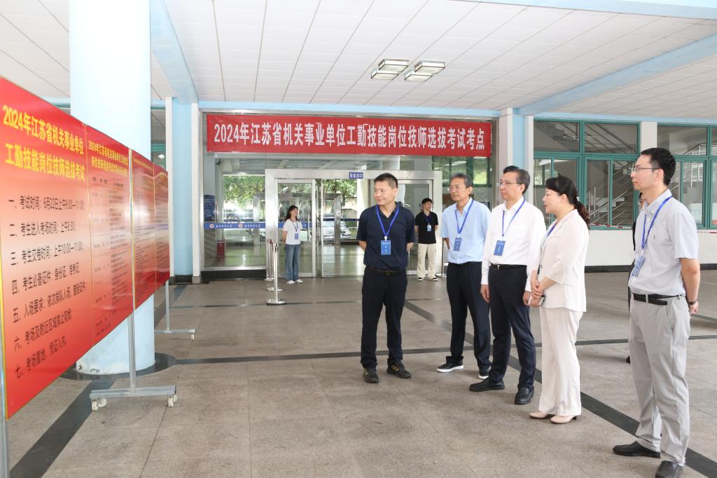6月22日上午,由江苏省机关事业单位工人技术等级岗位考核办公室主办、我校承办的2024年省直机关事业单位工勤技能岗位技师选拔考试在我校福建路校区举行。省人力资源和社会保障厅副厅长封春晴在党委常委、副校长李煜的陪同下现场巡考,省工考办主任刘玮、我校食品科学与工程学院党委书记许文彪等参加巡考。