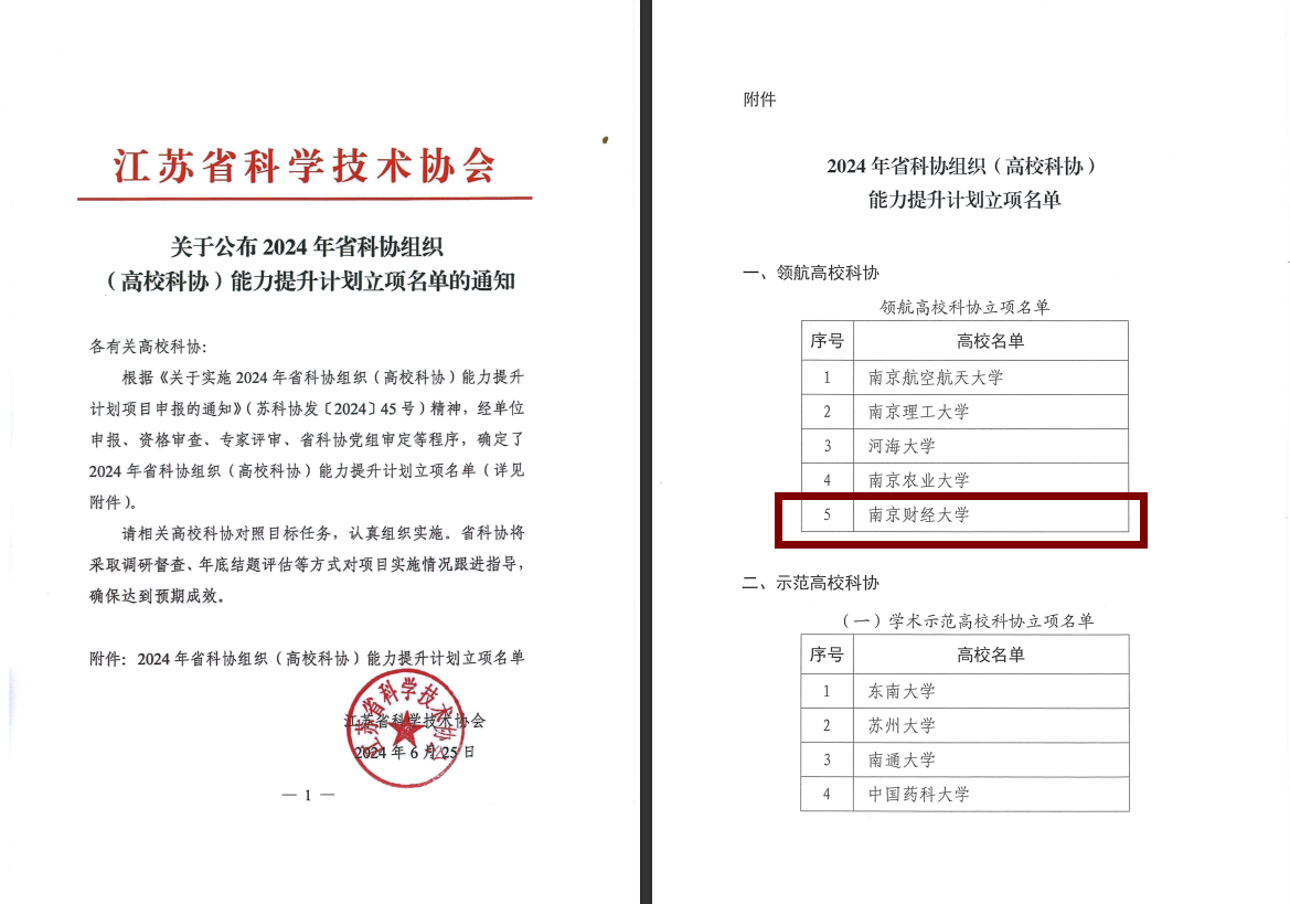 近日,江苏省科学技术协会公布了2024年省科协组织(高校科协)能力提升计划结果。我校在全省105所高校中脱颖而出,获评“领航高校科协”,为唯一一所入选的省属高校。