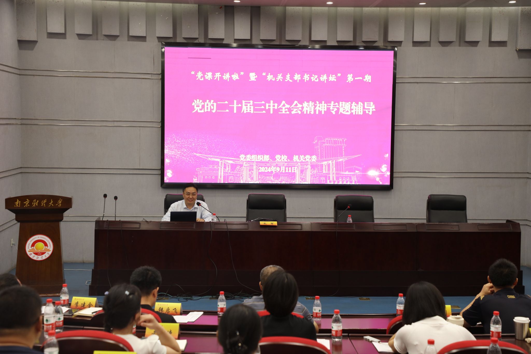 党委常委、宣传部部长,宣传部党支部书记朱军应邀作第一期专题辅导。他以“学习宣传贯彻党的二十届三中全会精神”为主题,结合具体事例,从进一步全面深化改革的重要性和必要性、指导思想、总体目标、原则,教育、科技、人才是中国式现代化的基础性、战略性支撑,中国式现代化是物质文明和精神文明相协调的现代化等三方面,生动、深刻地阐释了党的二十届三中全会精神。