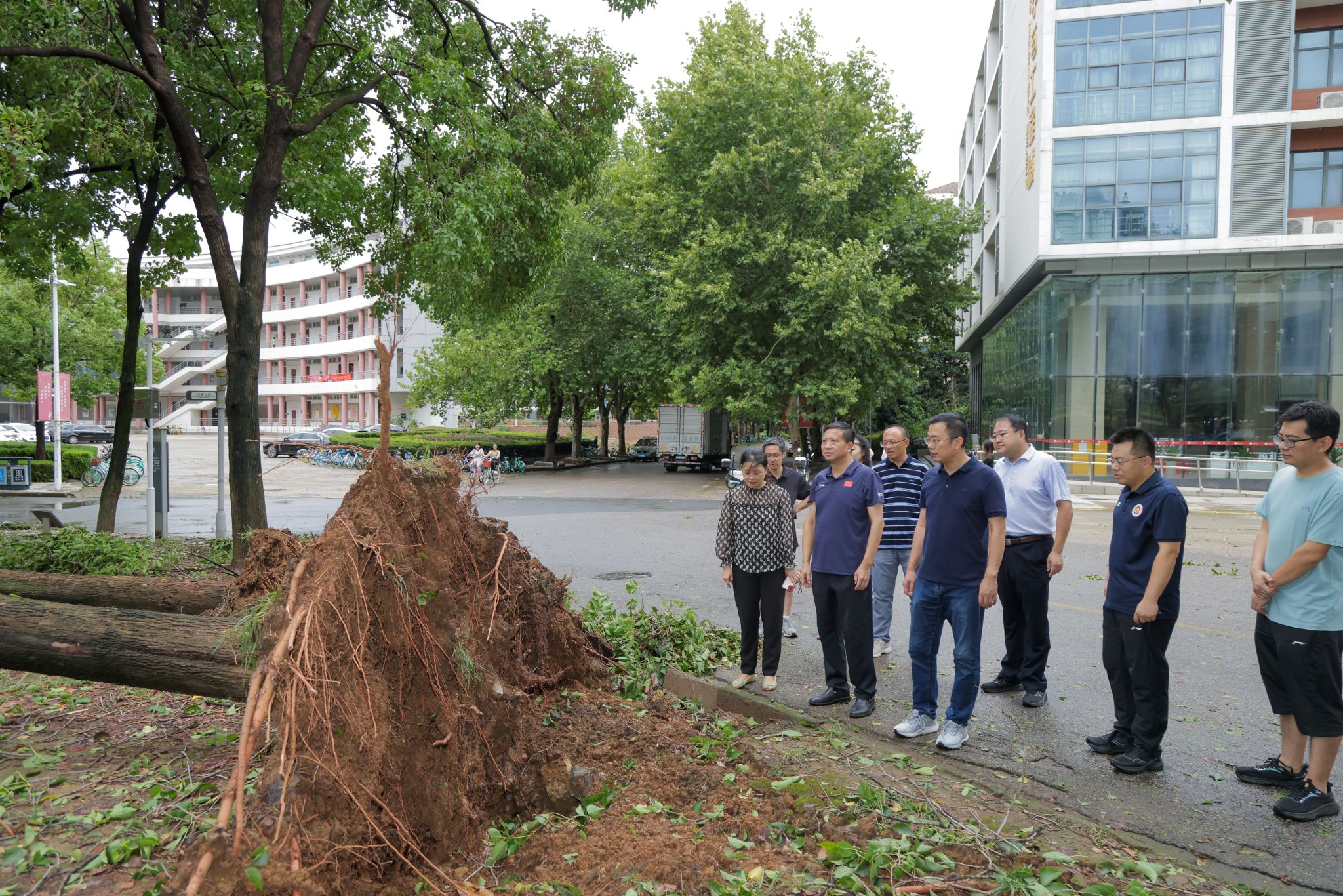 9月16日晚,台风“贝碧嘉”进入南京,狂风和暴雨叠加,对学校建筑设施、树木造成了不同程度的破坏。9月17日一早,校党委书记张利民,党委常委、副校长赵国栋,党委常委、副校长李煜分别带队实地察看仙林校区和桥头校区台风受灾情况,指导台风后校园恢复工作。党政办主任郑锷,研究生院院长沈永建,保卫处处长刘伟华,后勤基建处处长杜金华,党委宣传部副部长秦韶华,后勤基建处副处长王成杰,红山学院党委副书记、副院长王晨婷等陪同检查。