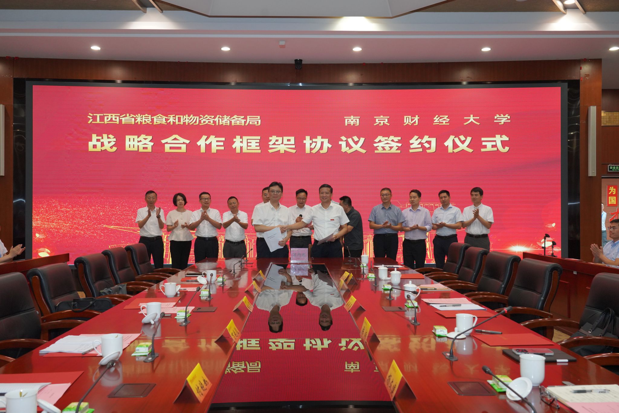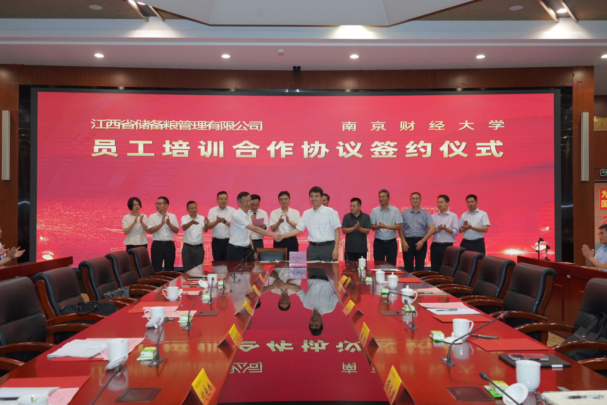 随后,张利民书记与路文革局长签订《南京财经大学与江西省粮食和物资储备局战略合作框架协议》。许文彪书记与万晓波书记签订《南京财经大学与江西工业贸易职业技术学院师资培训合作协议书》。唐培安院长与邹国杨总经理签订《南京财经大学与江西省储备粮管理有限公司员工培训合作协议书》。