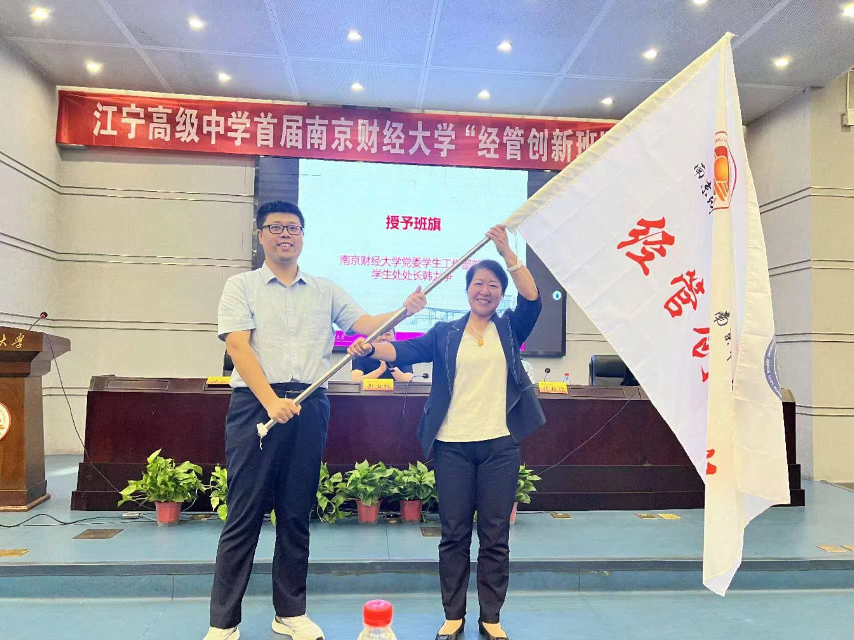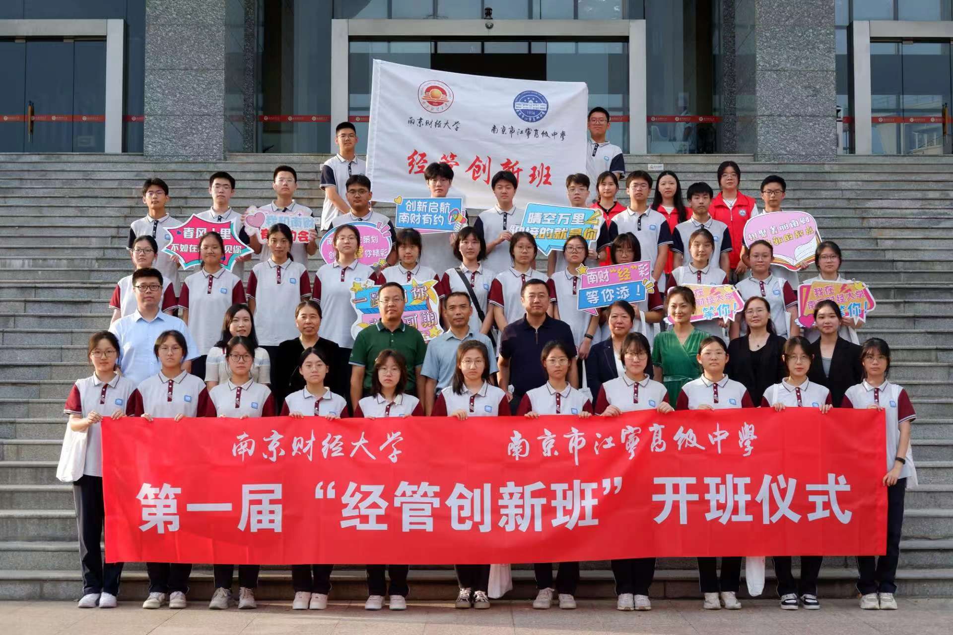 据悉,江宁高级中学是江苏省首批重点中学、国家级示范性高中、江苏省四星级高中,连续十年获得南京市教学质量“突出贡献奖”。作为我校重要的优质生源基地,近10年来,已为我校输送优秀人才200人。本次“经管创新班”的创办是双高合作办学的新起点,同学们不仅对大学生活有了更为深刻的理解,更在心中埋下了一颗追求卓越的种子。今后,我校将不断探索育人方式变革的新路径,积极践行“双高协作”和“高中大学贯通培养”的新模式,有力促进双方人才培养和招生工作高质量发展。