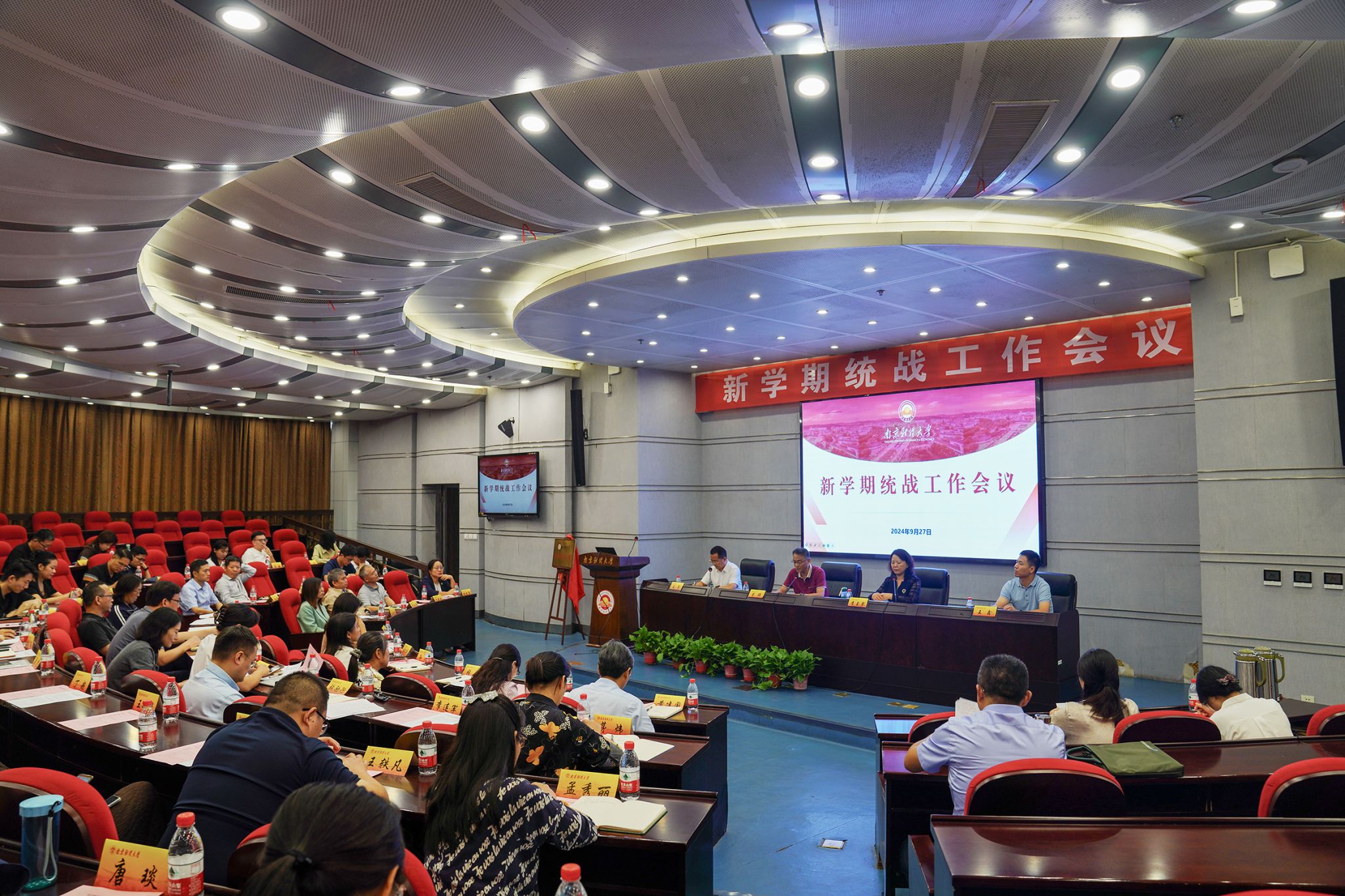 9月27日下午,学校在仙林校区行政楼二楼报告厅召开新学期统战工作会议。校党委副书记李群出席会议并讲话。党委常委、统战部部长李玉琴,各二级党组织统战委员、统战联络员,各民主党派、统战团体基层组织班子成员代表及党委统战部全体工作人员参加会议。会议由党委统战部副部长王军主持。
