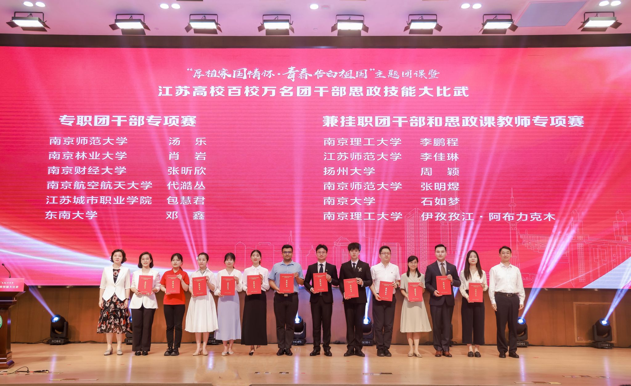 9月29日,由共青团江苏省委、中共江苏省委教育工委、新华日报社、江苏省学生联合会主办的江苏高校百校万名团干部思政技能大比武在南京林业大学落下帷幕。经过校赛、省赛初赛、决赛层层选拔,我校师生团干部、青年教师表现优异,获得特等奖1项、一等奖2项、三等奖3项,成绩在全省高校中名列前茅,并实现了我校在该项赛事中全赛道特等奖大满贯。