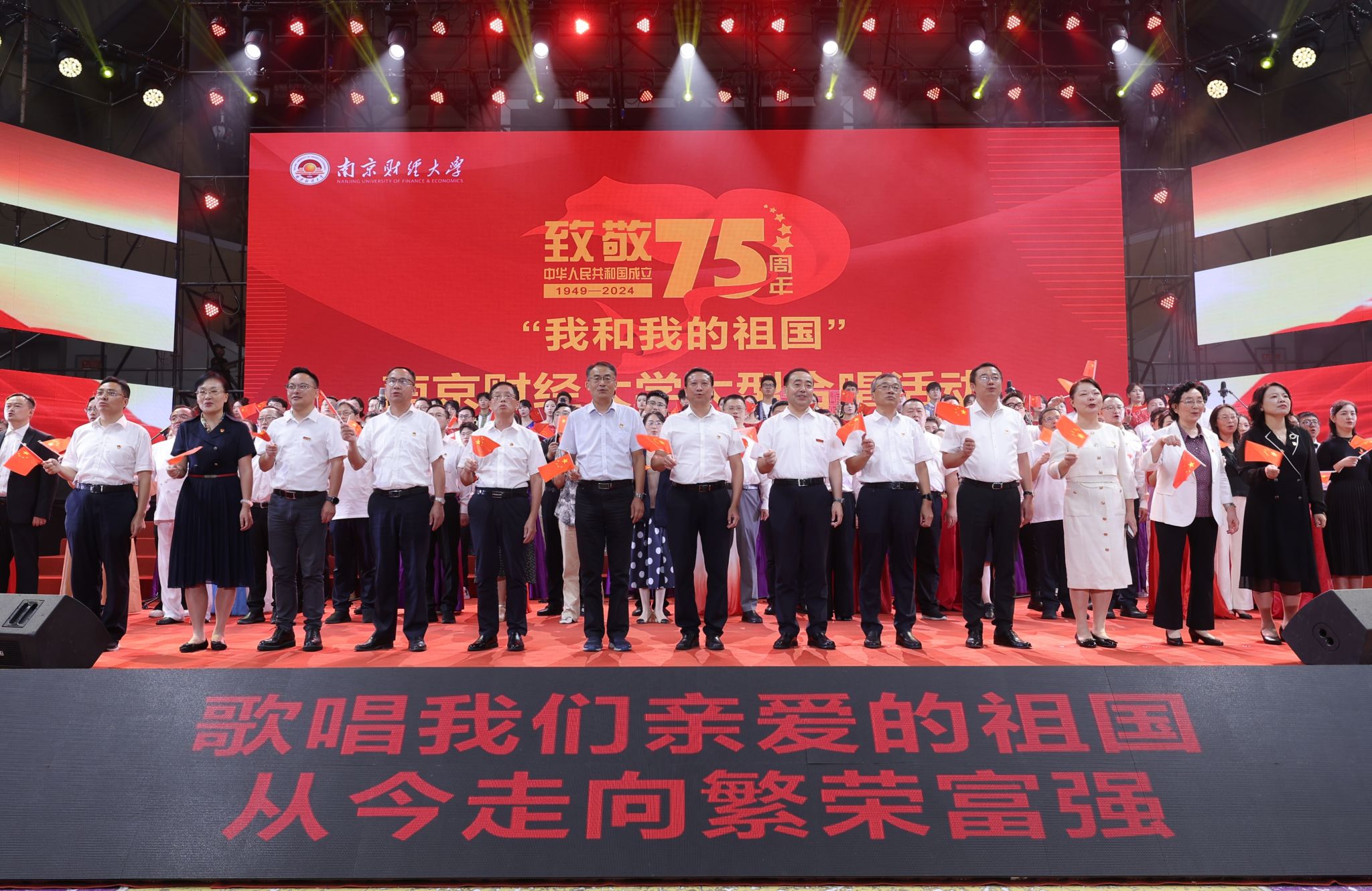 最后,合唱比赛在校领导与师生共同歌唱《歌唱祖国》中完美落幕。金色亮片从舞台上方飘落,闪闪发光,与新中国共成长的南京财经大学一定能在新时代书写新的篇章,我们的祖国一定会更加繁荣昌盛。