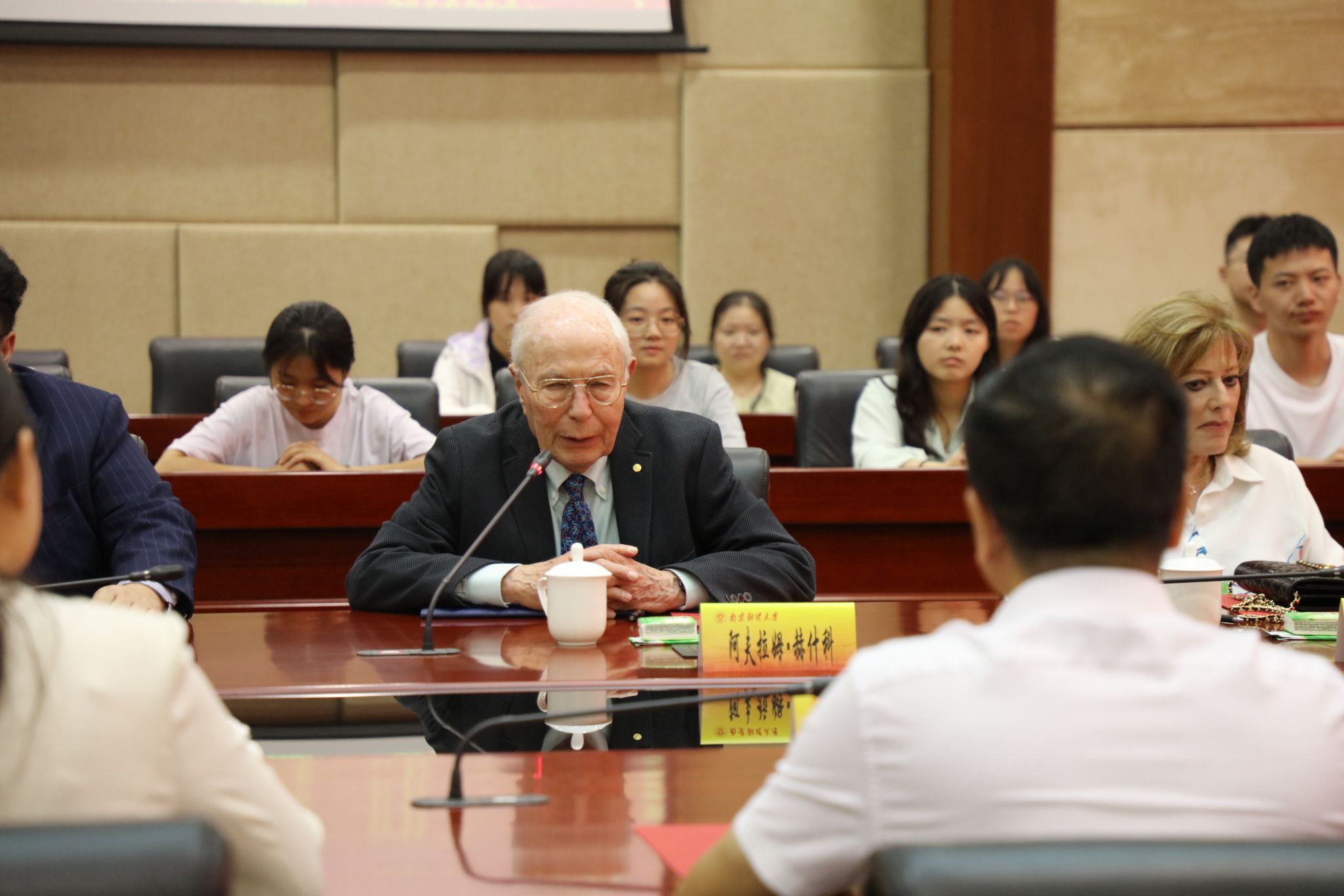 阿夫拉姆・赫什科院士表示很高兴受聘为我校名誉教授,并对我校的盛情接待表示衷心的感谢。赫什科院士指出,今年5月到访南京财经大学,学校鲜明的办学特色、浓厚的科研氛围,特别是新型先进的科研设备、相关前沿研究方向以及在食品科学领域突出的科研成果都给他留下了深刻印象。6月,学校又与江苏公元前科技有限公司共建食品营养与人类健康前沿交叉研究院,作为研究院院长和首席科学家,阿夫拉姆・赫什科院士希望与学校食品科学与工程学院围绕“大健康”领域,在科研体系构建、科研方向拓展、科研项目申报等方面展开密切合作,特别是在干预人体衰老方面进行深层次研究,力争将研究院打造成一流的科技创新和成果转化平台,为人类健康研究再作新贡献。