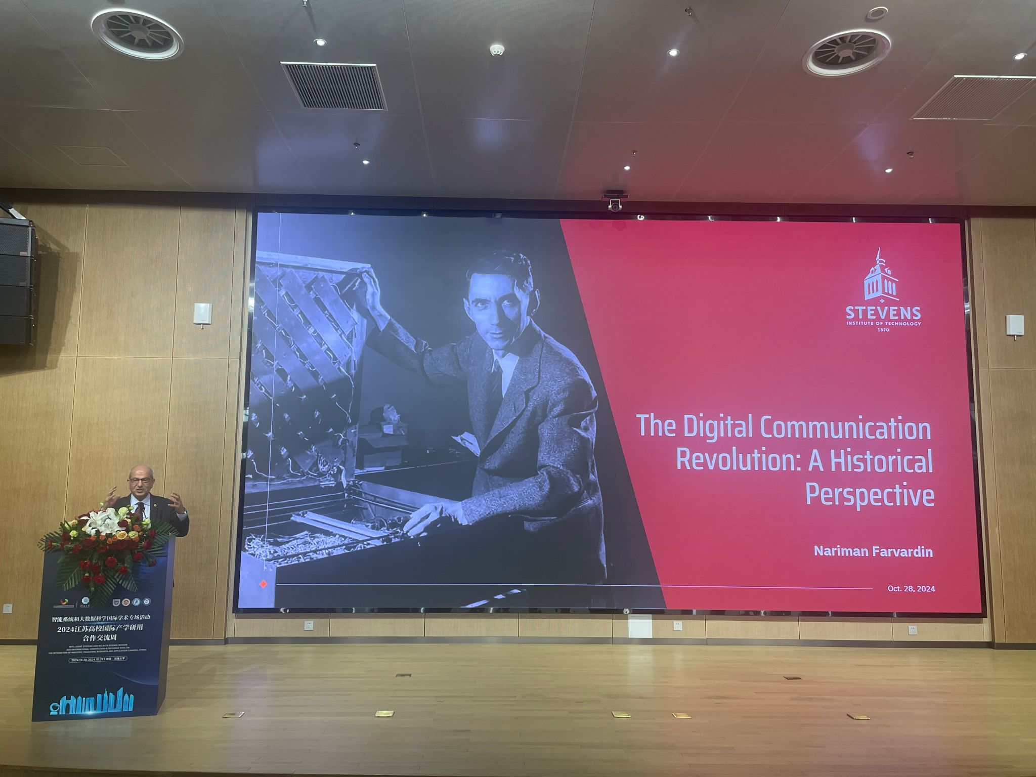 作为本届交流周的承办高校之一,我校与河海大学、南京邮电大学等4所高校共同举办“智能系统和大数据科学”分论坛,Farvardin校长在论坛上作题为“数字通信革命:历史视角”的学术报告。