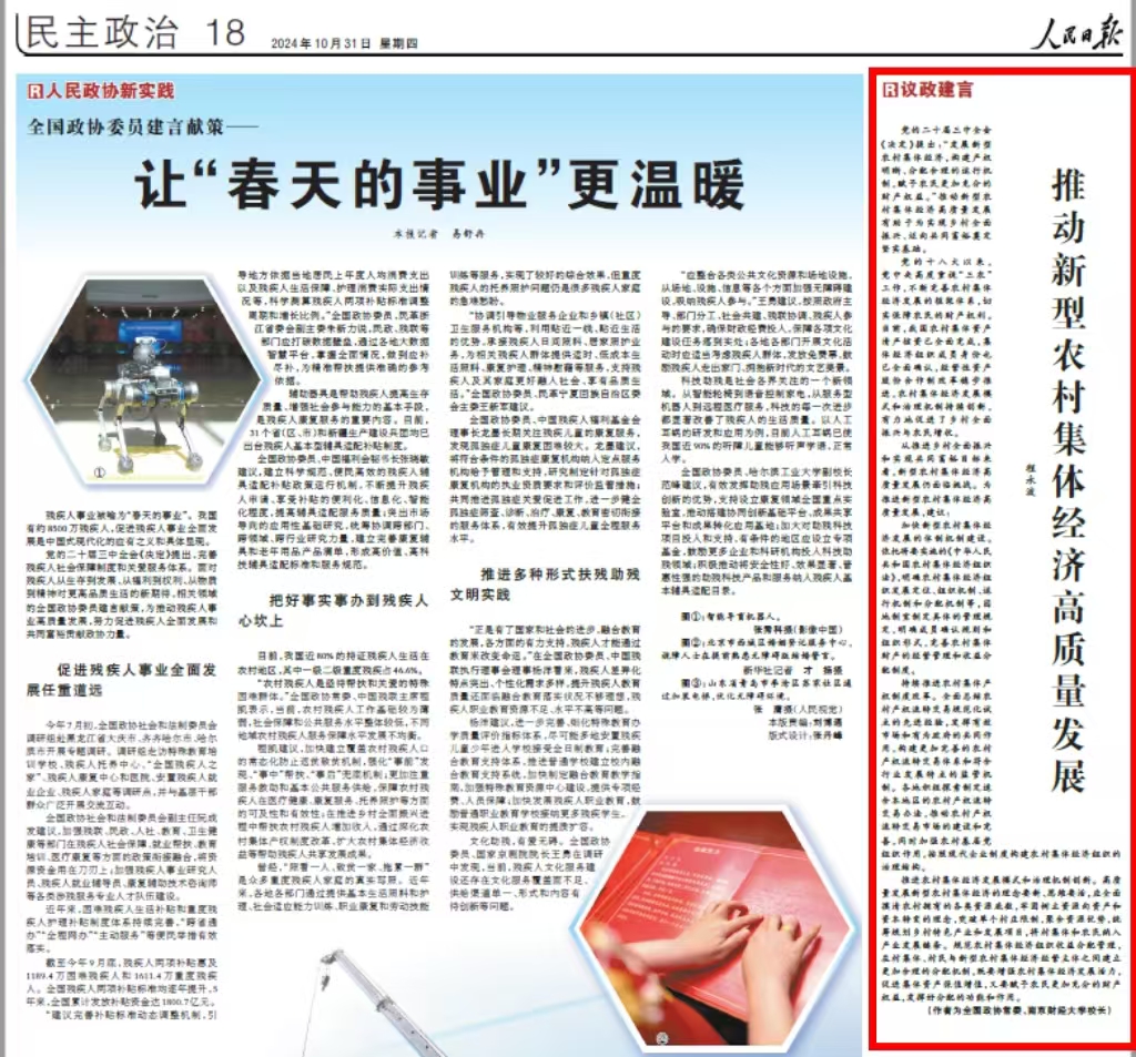 党的二十届三中全会《决定》提出:“发展新型农村集体经济,构建产权明晰、分配合理的运行机制,赋予农民更加充分的财产权益。”推动新型农村集体经济高质量发展有助于为实现乡村全面振兴、迈向共同富裕奠定坚实基础。