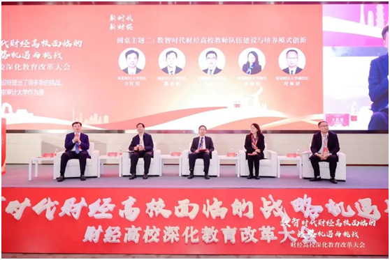 教育部原党组成员、副部长翁铁慧和高等教育司副司长武世兴强调了数智时代财经教育的重要性和挑战。翁铁慧强调,财经高校必须明确教育定位,牢牢把握教育的政治属性、人民属性、战略属性,在主动拥抱数智时代教育发展的趋势、加快教育数字化转型和人工智能应用当中不断提升思政引领力、人才竞争力、科技支撑力、民生保障力、社会协同力、国际影响力,并提出更深层次建构中国自主的知识体系、更大力度提升自主培养的人才体系及更广领域优化办学育人的治理体系等建议。武世兴指出,财经类院校要认真对标中央要求,贯彻全国教育大会精神,主动迎接数字时代机遇,加快财经领域新文科建设,并提出以习近平新时代中国特色社会主义思想铸魂育人、加快财经领域拔尖创新人才培养、深化产教融合育人新模式、要以数字化构建财经教育教学新形态、提升高等财经教育的国际影响力等建议。
