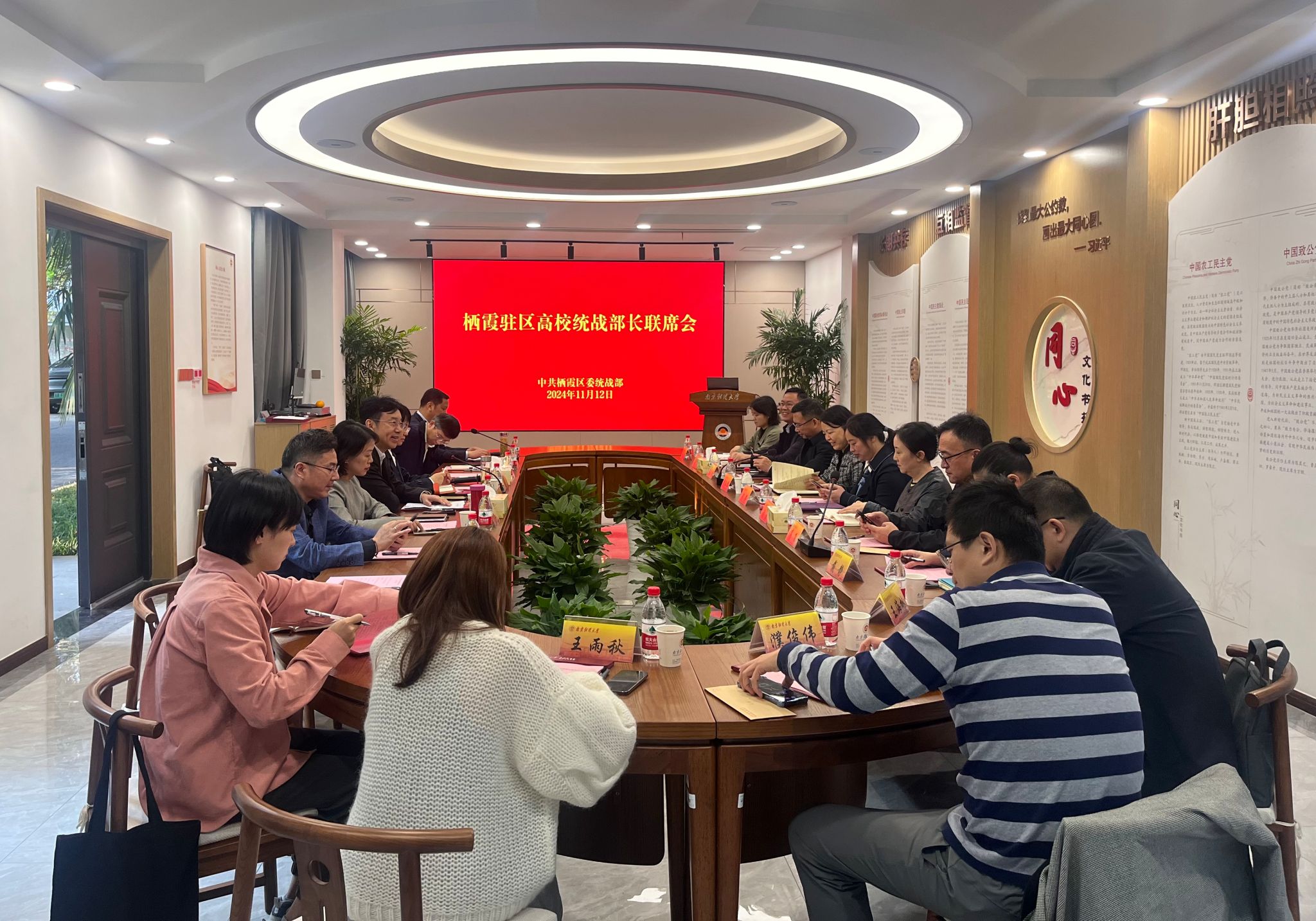 11月12日下午,栖霞区驻区高校统战部长联席会在我校仙林校区同心文化书苑召开。栖霞区委常委、统战部部长章晶,区委统战部各条口领导,南京大学、南京邮电大学、南京中医药大学、南京师范大学等驻区高校统战部领导、科室负责人参加会议。区侨办副主任陈学哲主持会议。我校党委常委、统战部部长李玉琴参加会议并作交流发言。