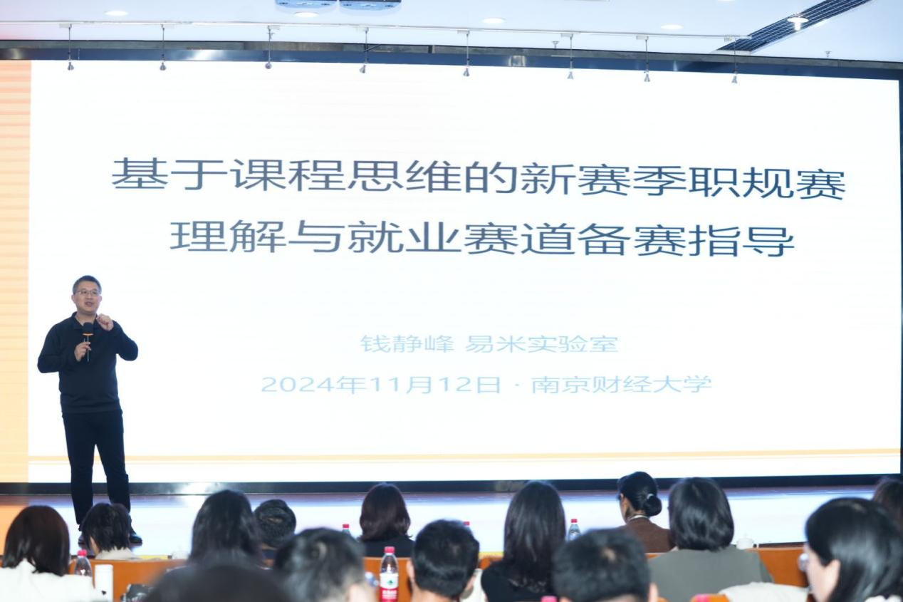教育部学生服务与素质发展中心生涯课程研发和师资专家钱静峰、南京航空航天大学生涯发展教育研究中心主任沈雪萍分别作主题培训。钱静峰教授从赛事理解与课程逻辑基础、目标职业的关键分析、赛道细则解读与应对、以赛促教职规模型的课程思维四个方面,作了“基于课程思维的新赛季职规赛解读与就业赛道备赛”专题讲座,深入分析了大赛的新变化和新要求,为与会人员提供了宝贵的备赛策略和建议。沈雪萍教授就助力学生成长的生涯教育路径进行了探讨。她分析和解读了成长赛道的比赛内容和评审标准,分享了生涯教育如何帮助学生认识自我和规划未来,并强调了教师在引导学生职业发展中的重要作用。