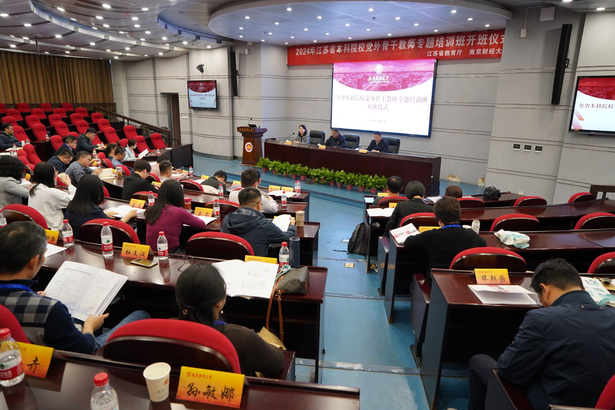 11月11日至15日,受省委教育工委委托,全省第35期高校党外中青年高级知识分子理论培训班在我校举办,来自南京大学、东南大学等全省70余所本科院校的党外中青年骨干教师代表参加培训。校党委副书记、社会主义学院院长李群,省委教育工委统群处二级调研员郝峰出席开班仪式。开班仪式由我校党委常委、统战部部长李玉琴主持。