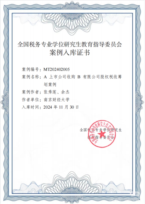 近日,全国税务硕士专业学位教学案例中心第一届案例征集评选结果公布。我校财政与税务学院张秀莲副教授编写的教学案例《A上市公司收购B有限公司股权税收筹划案例》在征集活动中脱颖而出,成功入选案例库。