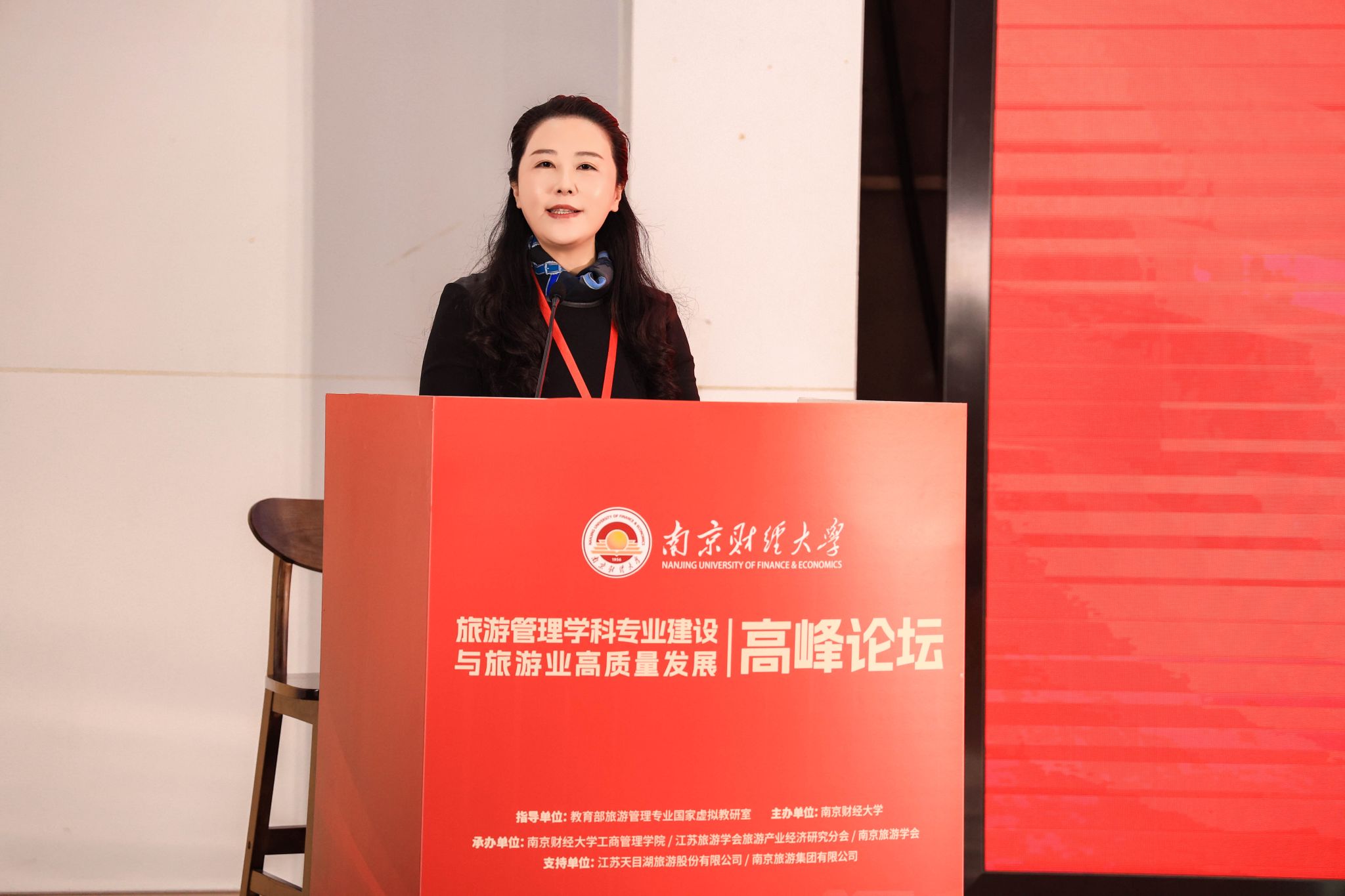 马勇副主任致辞。他肯定了我校旅游管理专业在学科建设、科研创新、人才培养、社会服务等方面取得的显著成绩,并表示,本次高峰论坛为旅游学界和业界提供了交流学术思想、探讨前沿问题的平台,展现了南京财经大学在旅游学科建设与行业引领方面的责任担当与前瞻视野。通过深入交流与研讨,论坛将激发更多学术和实践创新思想,推动我国旅游管理学科专业建设迈上新台阶,并助力旅游业高质量发展。