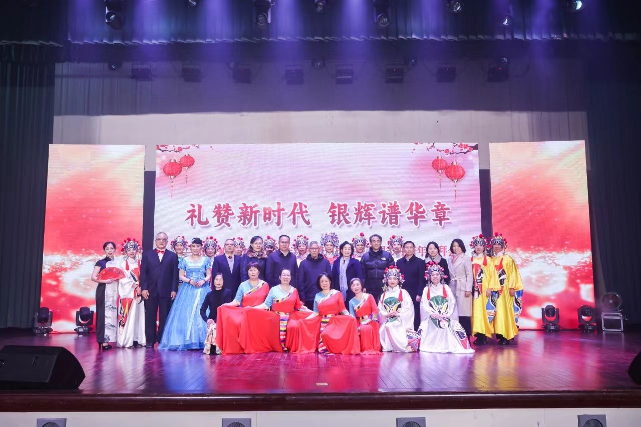在“礼赞新时代 银辉谱华章”老同志迎新年团拜会上,我校退休教职工载歌载舞,用合唱、舞蹈、朗诵、走秀等多种表演方式,礼赞新中国成立75周年来取得的辉煌成就,充分展现了我校老同志多才多艺、积极进取、乐观向上的精神风貌。