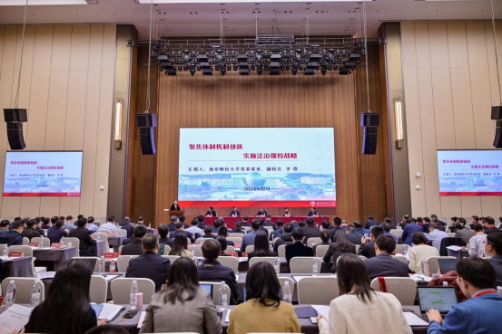 李煜副校长代表学校作题为“聚焦体制机制创新、实施法治强校战略”的发言,面向全国展示学校近年来在法治工作实践中积累的“南财经验”,贡献独特的“南财视角”与“南财智慧”。她表示,学校独立设置法制办公室作为综合管理部门,构建了集中处理涉诉案件机制、兜底负责事前合法性审查机制、专项负责法治宣传教育机制,旨在推动学校依法治理方面发挥关键作用。