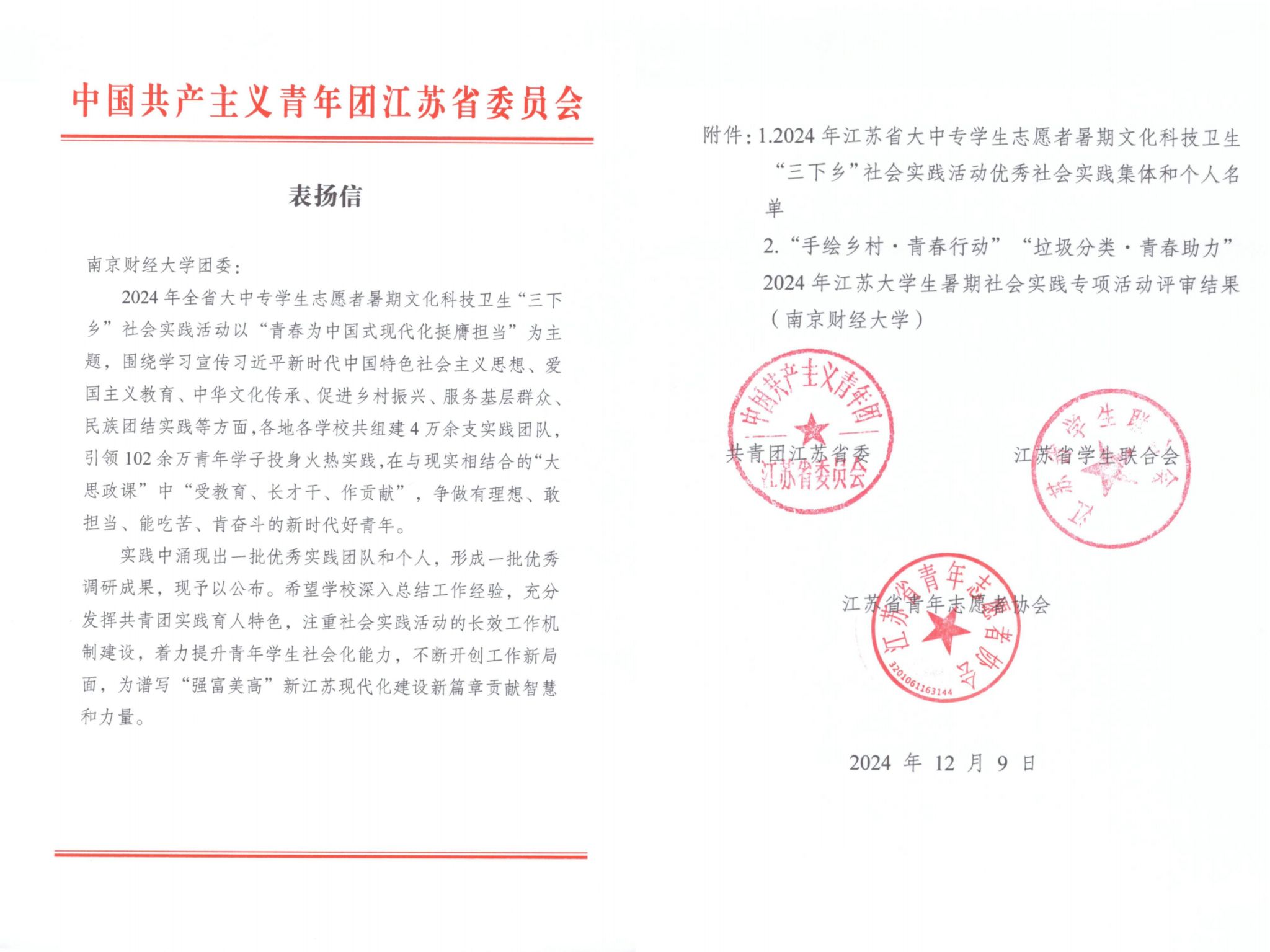 近日,2024年江苏省大中专学生志愿者暑期文化科技卫生“三下乡”社会实践活动优秀集体和个人表彰名单揭晓,我校获得24项荣誉,受到团省委通报表扬。