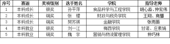 在本届比赛中,食品科学与工程学院本科三年级孙平萍同学以“粮食质量检验工程师”为职业目标,致力于成为大国守粮人,为国家粮食安全保驾护航,获成长赛道银奖;梅西学院大数据管理与应用专业本科四年级刘一江同学以“智慧粮仓工程师”为职业目标,致力于将大数据素养运用到粮食储藏领域,获本科就业赛道银奖;财政与税务学院本科三年级张檬同学以“国际税务专员”为职业目标,金融学院本科三年级樊苏祺同学以“碳金融管理师”为职业目标,营销与物流管理学院本科四年级魏宇同学以“内容运营官”为职业目标分别获得本科成长赛道和就业赛道铜奖。