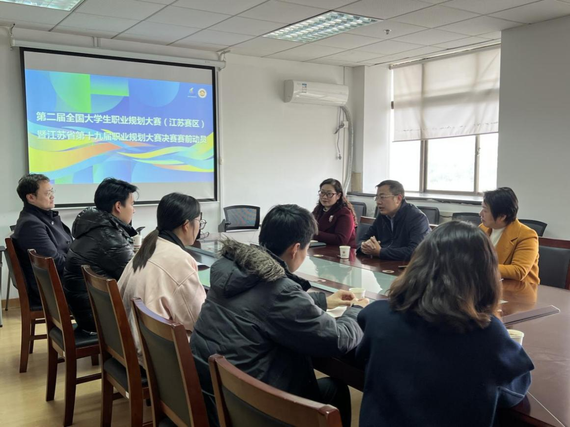 我校自去年10月启动本届职业规划大赛宣传和赛前培训。校内选拔赛由学生处主办、大学生就业与创业指导中心承办,经过校内初赛、复赛和决赛,共选送6名选手进入省级复赛,最终2名选手晋级省级决赛。2月26日下午,我校召开第二届全国大学生职业规划大赛暨江苏省第十九届职业规划大赛决赛赛前动员会。党委常委、副校长赵国栋,学生处处长韩力争,学生处副处长、大学生就业与创业指导中心主任李慕原,食品科学与工程学院、梅西学院等相关学院领导及指导教师,进入决赛的参赛选手参加会议。赵国栋副校长作赛前动员讲话,他祝贺入围选手,肯定了他们在此次比赛中的优异表现。他表示,同学们要继续努力,查漏补缺,做到战略上重视、战术上藐视,放松心态。此次比赛不仅代表个人,更代表学校,相关学院要全力支持参赛同学,提供全方位的指导和资源保障。