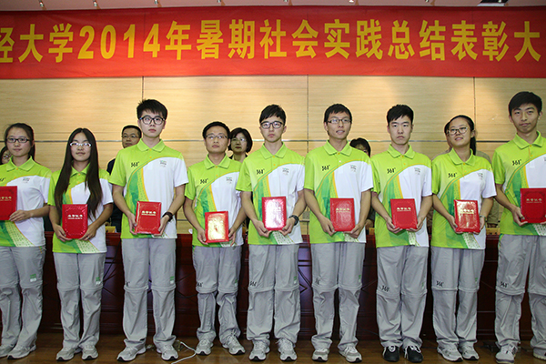 教务处处长陆华良宣读了《关于表彰南京财经大学2014年暑期“三下乡”社会实践活动先进集体和先进个人的决定》,国际经贸学院等5个学院获得“先进单位”荣誉称号;会计学院等5个学院获得“优秀宣传成果奖” ;经济学院“城镇化农民利益保护暑期实践小分队”等10支团队获得“十佳团队”荣誉称号;经济学院“互联网金融对商业银行的影响及对策研究——以第三方支付为例”等10篇调研报告获得“十佳报告”荣誉称号;经济学院“南京财经大学互联网金融调研团队”等10支团队获得“十佳风尚奖”;经济学院董远舟等10名同学获得“十佳使者”荣誉称号;财政与税务学院“南京市栖霞区国家税务局实践基地”等10个学院实践基地获得“优秀社会实践基地”称号。