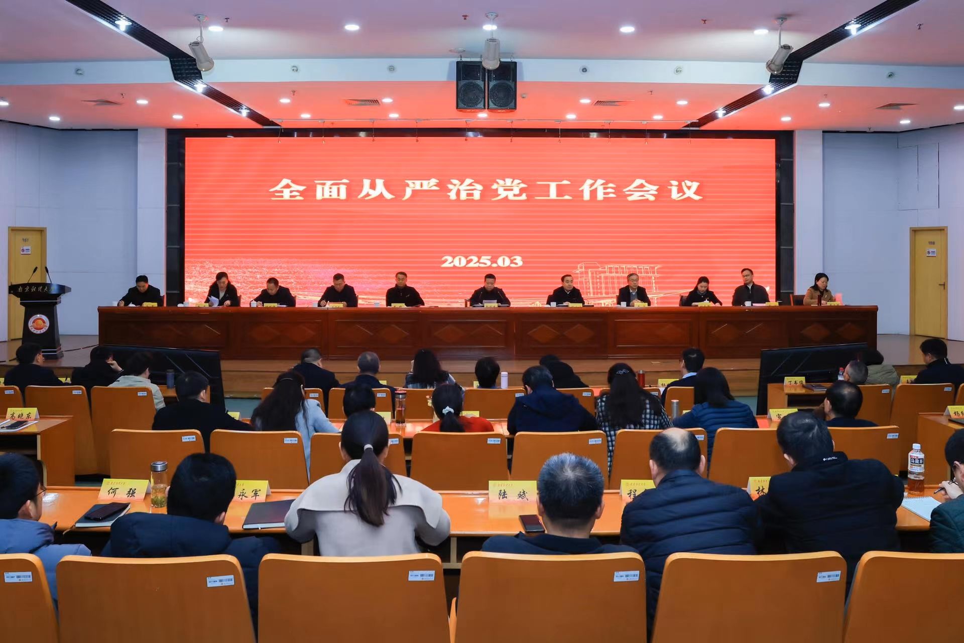 3月14日下午,我校全面从严治党工作会议在仙林校区图书馆一楼报告厅召开。全体在校校领导,全体党委委员、纪委委员,全体中层干部,资产经营有限公司主要负责人,特约监察员代表参加会议。会议由校党委书记张利民主持。