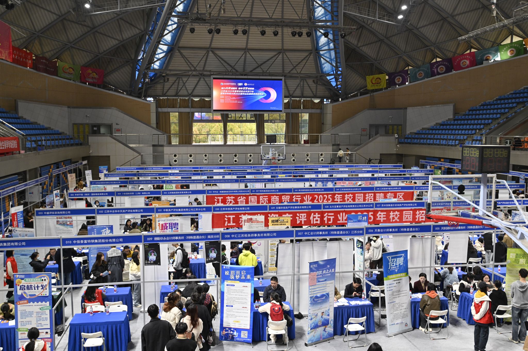 3月28日下午,江苏省2025年“春季促就业攻坚行动”暨我校2025届毕业生春季专场招聘会(春季第二场)在仙林校区体育馆举办。招聘会由我校主办,党委学生工作部、学生处承办,国际经贸学院协办。