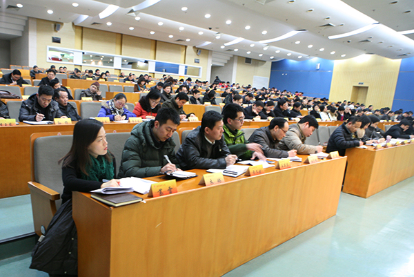 下午,学校在仙林校区图书馆一楼报告厅召开2015年工作部署大会。全体校领导出席会议。全体中层干部,各民主党派负责人,教代会执委会委员,全体教授参加会议。会议由校党委书记陈章龙主持。