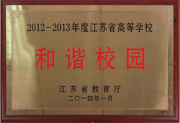 日前,省教育厅公布了“2012-2013年度江苏省高等学校和谐校园”评选结果(苏教社政[2014]1号﹞,我校喜获“江苏省高等学校和谐校园”称号。