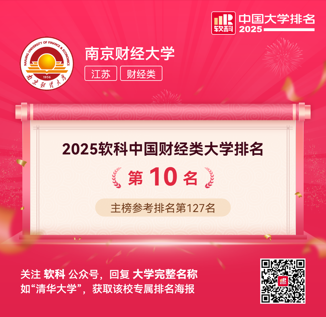 4月15日,高等教育专业评价机构软科正式发布“2025软科中国大学排名”,包括1个综合性大学排名(主榜)和财经类大学排名等8个单科性大学排名。在2025软科中国财经类大学上榜的53所高校中,我校排名第10位,这也是我校继2022年、2024年之后第3次进入榜单前10。2025年,我校软科综合性大学排名(主榜)位列第127名,相比2024年第167名,进步较大,标志着我校在加快建设全国一流的省属财经类大学进程中迈出坚实一步。