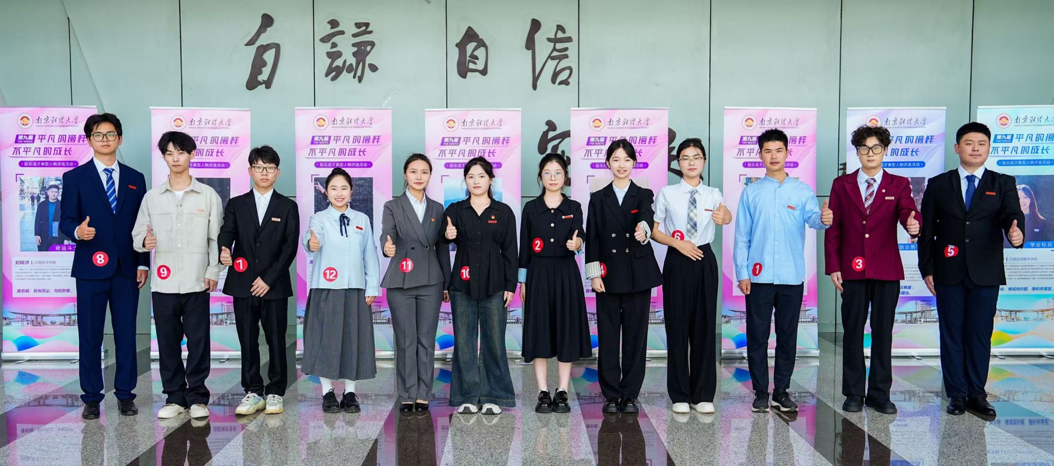最终,经评委打分和现场观众评审,经济学院席凯轩,金融学院王腾运、洪烨,国际经贸学院徐贞志、李启颜,营销与物流管理学院王亮获评第九届励志成才典型人物;经济学院刘锦洪、国际经贸学院徐晶莹、法学院纪晓婷、应用数学学院吴文静、计算机与人工智能学院巫鹏、新闻与文化传播学院王芝静获评第九届励志成才典型人物提名奖。