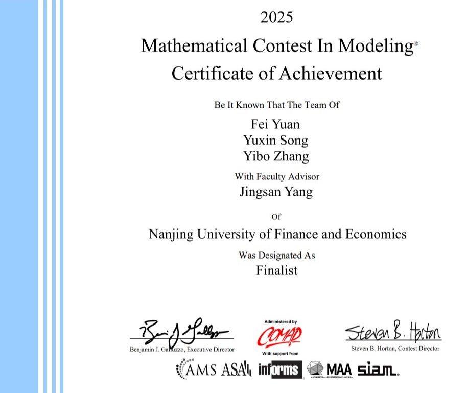 我校学子在2025年美国大学生数学建模竞赛中获特等奖提名
