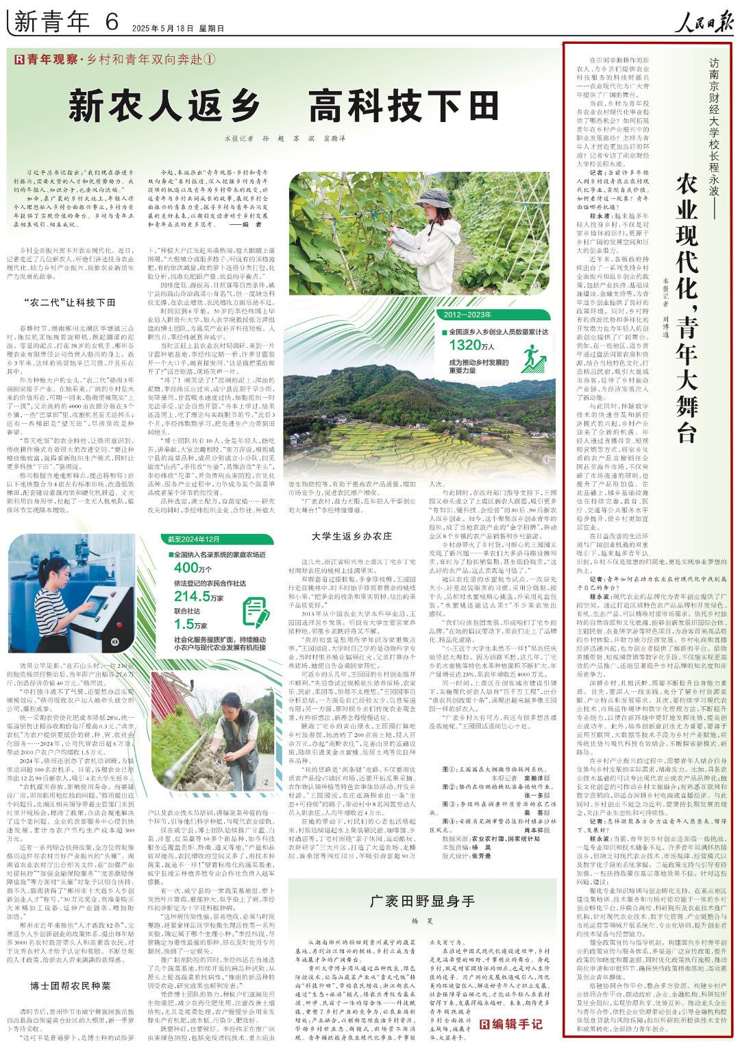 5月18日,《人民日报》第六版《新青年》刊发校长程永波专访文章《农业现代化,青年大舞台》。程永波校长就“乡村为青年投身农业农村现代化事业提供了哪些机会”发表了自己的看法,并就“如何拓展青年在乡村产业振兴中的职业发展路径”“怎样为青年人才营造更加良好的环境”提出建议。