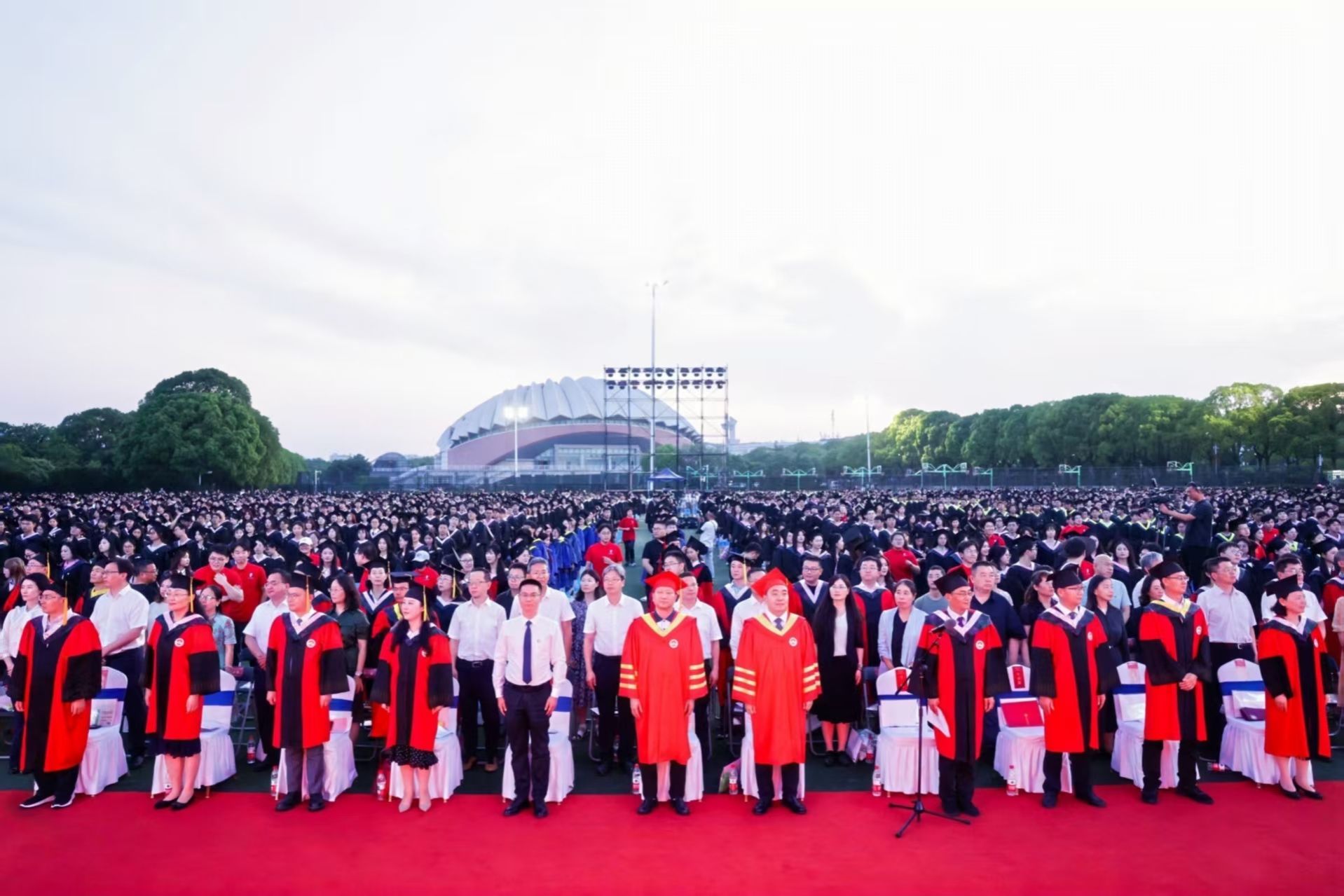 星河璀璨新启程,驭风踏梦向远方。6月17日晚,我校2025年毕业典礼暨学位授予仪式在仙林校区西苑体育场举行。校党委书记张利民出席典礼并为校友大使代表颁发校友徽章,校学位评定委员会主席、校长程永波出席典礼并致辞。全体校领导、校学位评定委员会委员代表、相关职能部门负责人、各学院党政负责人、教师代表、校友代表、后勤服务人员代表及2025届毕业生参加典礼。毕业典礼由校党委副书记李群主持。