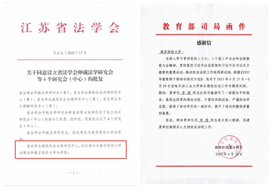 近日,我校成功获批设立江苏省法学会高校依法治理研究中心,该中心依托法制办公室和法学院联合建设。作为首批“江苏省依法治校示范校”,我校构建了“法治强校”战略框架下的完整工作体系,发挥多学科协同优势,形成了经济学、管理学与法学深度融合的研究特色。近年来,法制办公室和法学院通过持续深化教育教学改革,强化理论与实践结合,承担多项国家级、省部级课题任务,为我校依法治理研究提供了扎实的学术支撑。