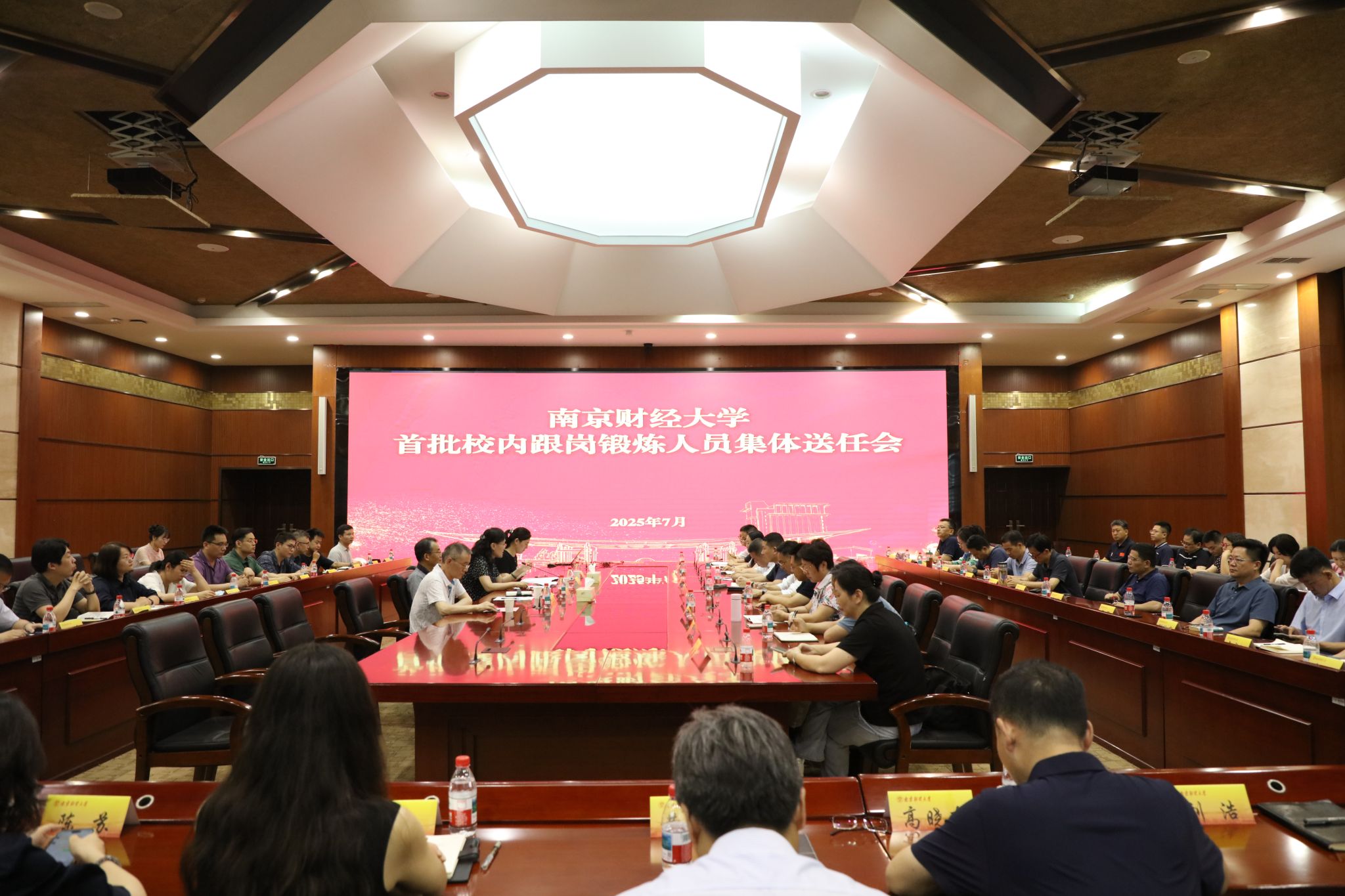 7月2日下午,我校在仙林校区工科楼二楼会议室召开首批校内跟岗锻炼人员集体送任会。校党委副书记李群出席会议,派出单位、跟岗单位主要负责同志,跟岗锻炼业务导师,全体跟岗锻炼人员以及党委组织部、校纪委相关工作人员参加会议。会议由党委常委、组织部部长吕戎主持。