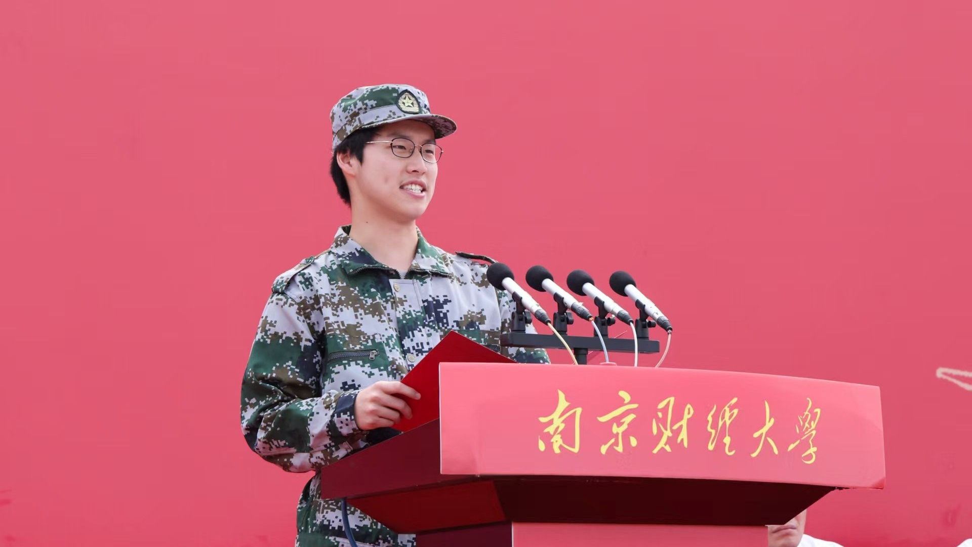 本科生新生代表、财政与税务学院税收学(中汇班)徐天奕发言。他表示将潜心钻研、读万卷书,关注社会、明国家事,在知行合一中成长为有理想、有本领、有担当的南财人。