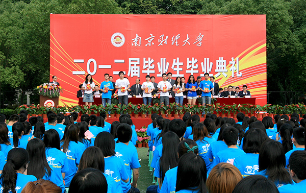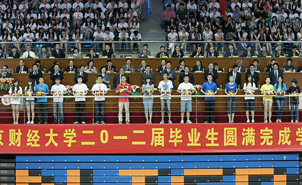 “秉承自谦、自信、务实、超越的精神,带着母校的祝愿和期盼投身社会,追求真理,严守法纪,勤奋进取,不断创新,用我们的品格和精神锤炼自己、影响他人,用我们的聪明和才智挑战自我、服务社会,为经济发展、社会进步、国家富强、民族振兴而努力奋斗!” 伴随着庄严的毕业生誓词,和着激昂的《南财大之歌》,我校2012届毕业生毕业典礼圆满结束。