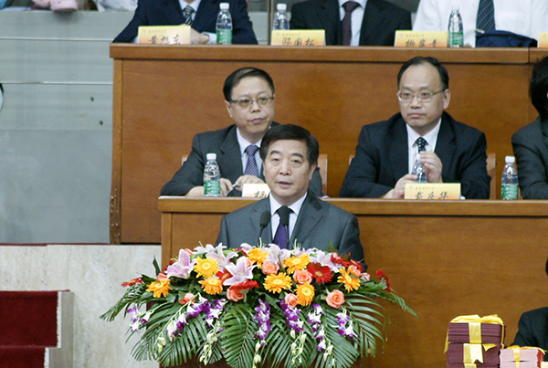教师代表、新闻学院院长邵国松发言。他代表全体教师对毕业生表示祝贺和祝福,希望同学们做有理想、有思想的人,学会面对挫折,从而在未来的人生道路上展翅高飞,以优异的成绩回报母校。