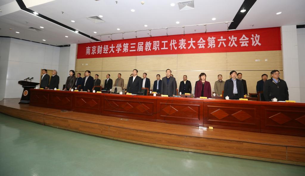 3月20日下午,我校第三届教职工代表大会第六次会议全体会议在仙林校区图书馆一楼报告厅召开。全体校领导、大会主席团成员在主席台就坐,全体教代会代表参加会议,学校中层干部、分工会主席、各民主党派及统战团体负责人、各级人大代表、政协委员列席会议。会议由大会秘书长、校党委副书记温潘亚主持。