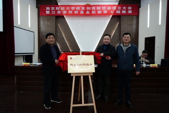 大会审议通过了《南京财经大学校友创投联谊会章程》,宣读南京财经大学创投会第一届理事会负责人建议名单并提请大会表决通过,南京财经大学科技金融研究院院长、江苏省投资基金联盟会长张帆当选为南财创投会首任会长。南京财经大学党委常委、副校长乔均等领导为创投会揭牌并为理事会负责人颁发聘书。校友江苏银行南京分行党委书记、行长沈晓驰也代表南财金陵校友会致辞祝贺。
