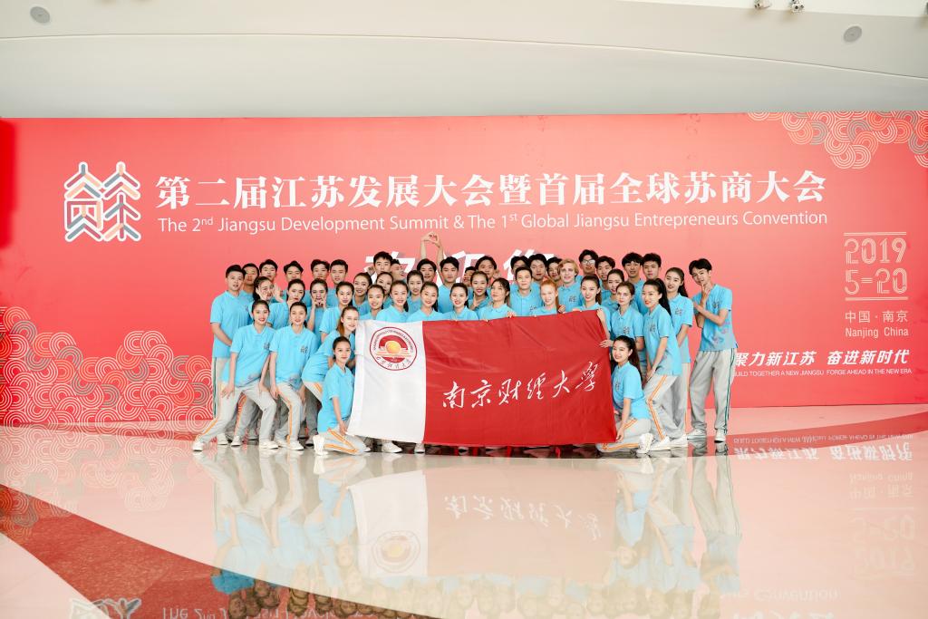 5月20日上午,第二届江苏发展大会暨首届全球苏商大会在江苏大剧院隆重开幕,1200多位来自海内外、省内外乡贤嘉宾在这里话友谊、叙乡情、谋发展。江苏省委书记、省人大常委会主任娄勤俭在开幕式上发表主旨演讲,江苏省委副书记、省长吴政隆先生主持大会。开幕式前,我校大学生艺术团受邀参加了快闪活动,为大会的召开营造了热烈的氛围。