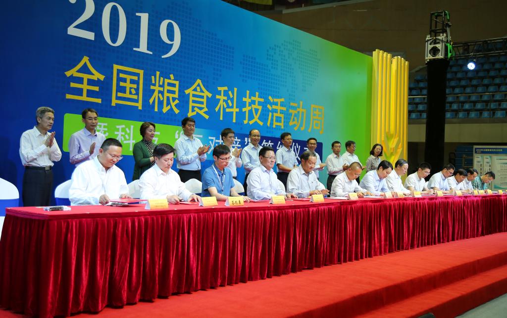 签约仪式现场,同步举办了科技和人才展览,各有关单位全面展示了在人才培养和粮食储藏、加工、物流、质量安全及装备领域取得的科研成果。